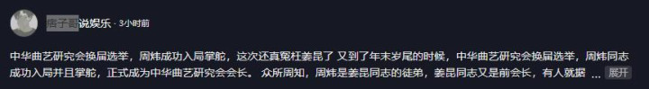 【1】2026年2月3日发布 痞子哥说娱乐《中华曲艺研究会换届选举,周炜成功入局掌舵》