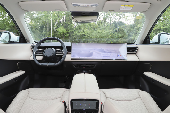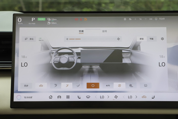 进入车内,视觉焦点无疑是那块超大尺寸的26.45英寸5K一体式大屏,画幅比例达到了32:9,视觉冲击力很强,基本贯穿了整个中控台。这个屏幕不仅分辨率高,画面细腻,适合看视频、导航和多任务处理,而且尺寸巨大让信息显示更清晰,操作起来也方便。相比很多传统车的中控屏,这块大屏的体验升级明显,感觉更像是高端家用娱乐设备。用了几天发现,这块屏幕反应灵敏,触控流畅,菜单设计也比较人性化,上手快。